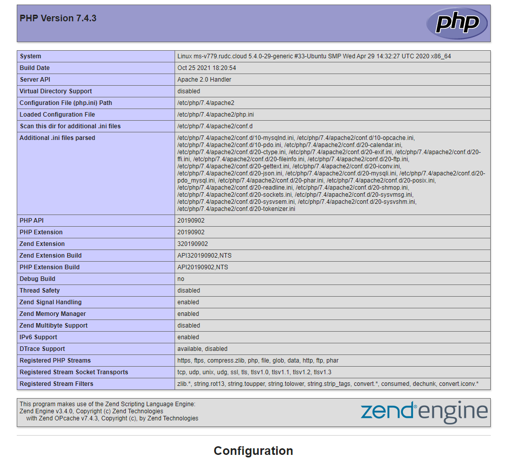Вы получите веб-страницу, содержащую подробную информацию о вашем сервере: