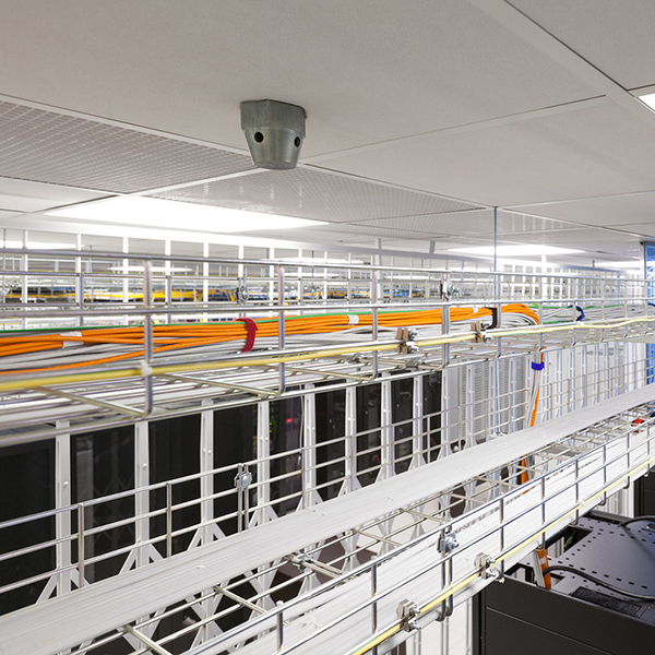 Дата-центр оборудован системой сверхраннего обнаружения дыма VESDA в каждом зале. Аспирационные дымовые извещатели непрерывно всасывают воздух и пропускают его через двухступенчатый фильтр в калибровочную камеру обнаружения, контролируемую стабильным лазерным источником. При наличии дыма свет рассеивается и немедленно регистрируется высокочуствительной приемной системой.