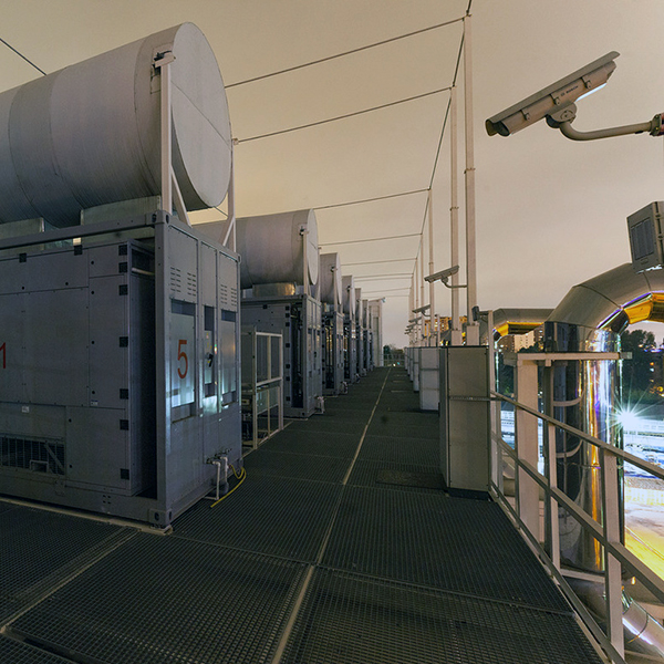 В ЦОДе реализована модульная система охлаждения EcoBreeze. Используется приточная установка с косвенным фрикулингом и фреоновые прецизионные кондиционеры в качестве резервной системы.